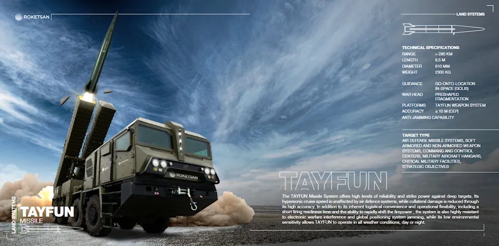Η τουρκική εταιρεία αμυντικής τεχνολογίας Roketsan παρουσίασε στο IDEF 2025 την Tayfun Block IV, μία εκδοχή σημαντικά αυξημένων διαστάσεων και δυνατοτήτων του βαλιστικού πυραύλου μικρού βεληνεκούς Tayfun, αναδεικνύοντας παράλληλα δύο σημαντικές τάσεις: