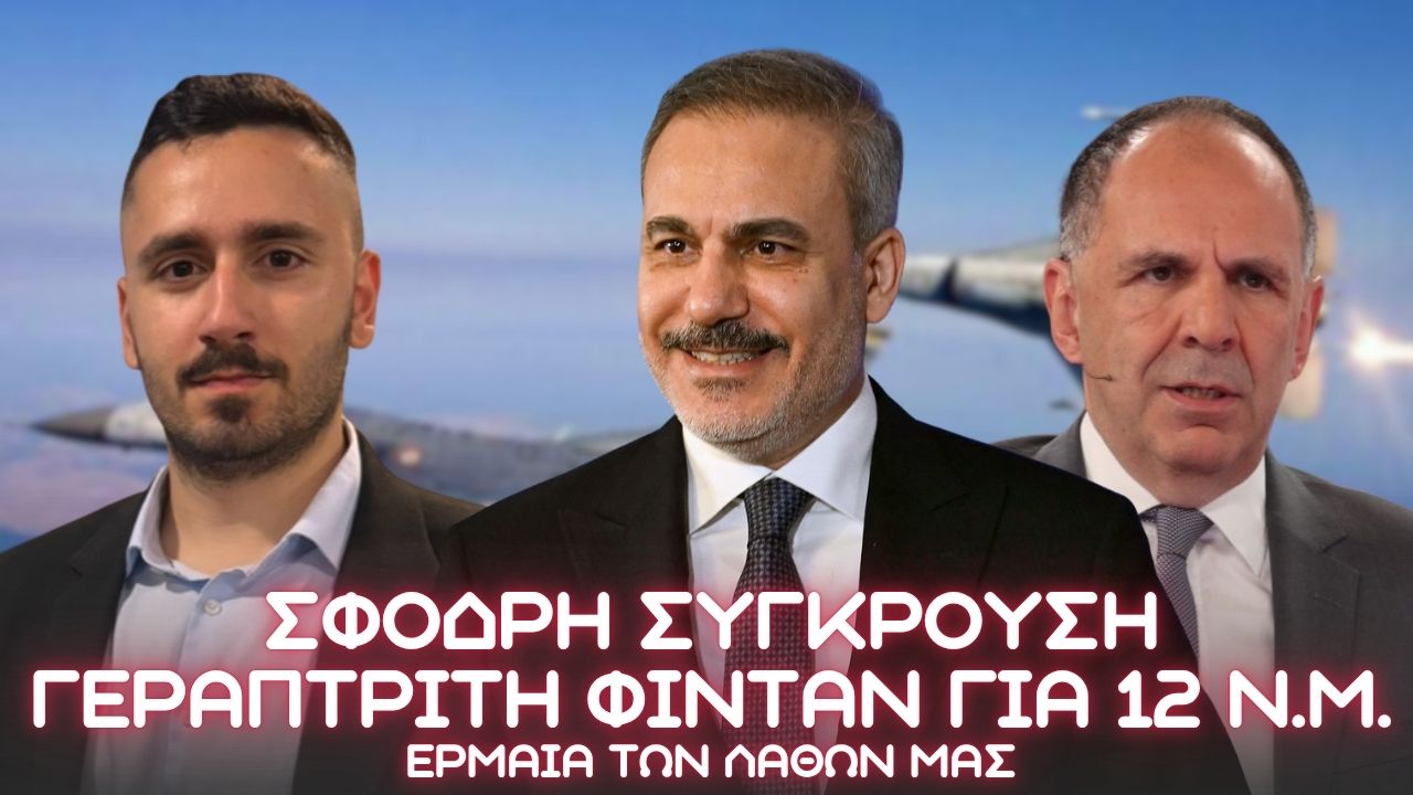 ΚΟΛΑΣΗ με σύγκρουση Γεραπετρίτη – Φιντάν για Ελληνοτουρκικά και 12 Ν.Μ. – Έρμαια των λαθών μας. Σε αυτές ο Τούρκος ΥΠΕΞ συμπεριέλαβε και το Αιγαίο, υπογραμμίζοντας χαρακτηριστικά: «Στη γλώσσα της ειρήνης, επειδή το ζήτημα είναι πραγματικά πολύ απλό. Δεν δέχομαι 12 μίλια, εσείς δεν δέχεστε 6 μίλια. Στεκόμαστε, λοιπόν, σε ορισμένα σημεία, έχουν γίνει διερευνητικές συνομιλίες στο παρελθόν, έχουν καλυφθεί ορισμένες αποστάσεις. Το ζήτημα του Αιγαίου δεν είναι ένα άλυτο πρόβλημα. Όσο υπάρχει η βούληση, αυτό το πρόβλημα μπορεί να λυθεί»