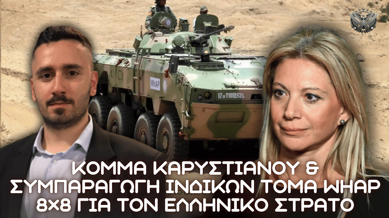 Κόμμα Καρυστιανού και συμπαραγωγή Ινδικών ΤΟΜΑ WhAP 8×8 για τον Ελληνικό Στρατό. Ο ελληνικός στρατός ξεκίνησε επίσημα την αξιολόγηση του ινδικού θωρακισμένου οχήματος μάχης πεζικού WhAP 8×8, μετά από συνομιλίες με την ινδική εταιρεία Tata Advanced Systems. Η κίνηση αυτή σηματοδοτεί την πρόθεση της Ελλάδας να διευρύνει τις επιλογές της για σύγχρονες θωρακισμένες πλατφόρμες με τροχούς, εν μέσω των πιέσεων για την περιφερειακή ασφάλεια.